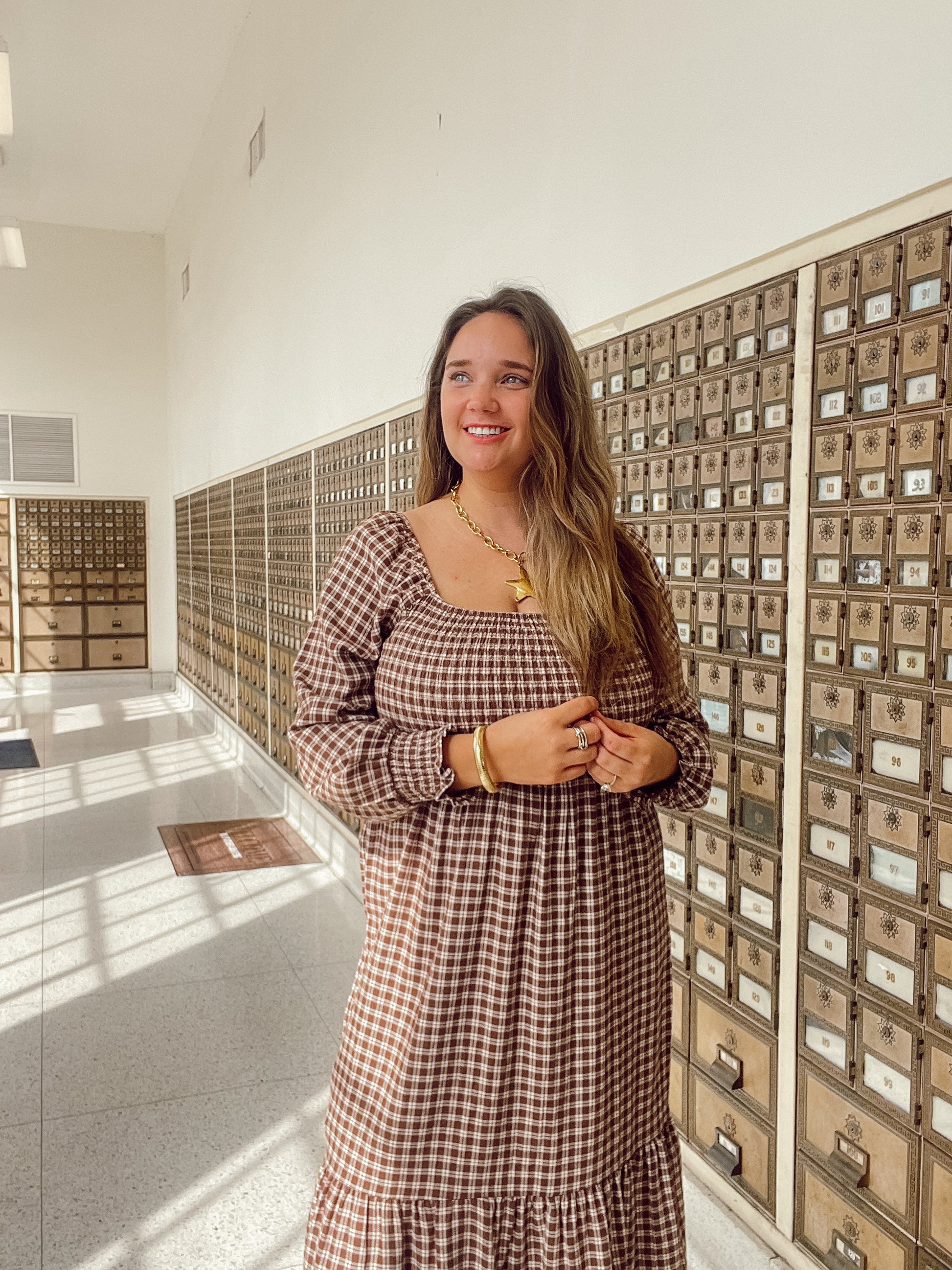 Checkered brown and cream long dress